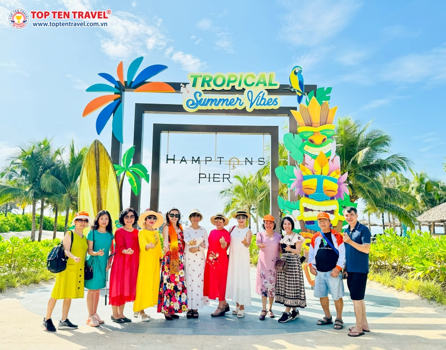 Check in tại Cầu ngắm biển Hamptons Pier Hồ Tràm - nơi ngắm hoàng hôn lý tưởng. Cầu đi bộ dài 270m chạy ra giữa biển và rộng từ 10-20m và cũng là cây cầu đi bộ đầu tiên tại khu vực Hồ Tràm. Du khách sẽ được đi bộ hóng gió ngắm cảnh biển tuyệt đẹp trên cầu , lưu giữ khoảnh khắc bên cạnh những người thân yêu với góc nhìn rộng 360 độ tuyệt vời.