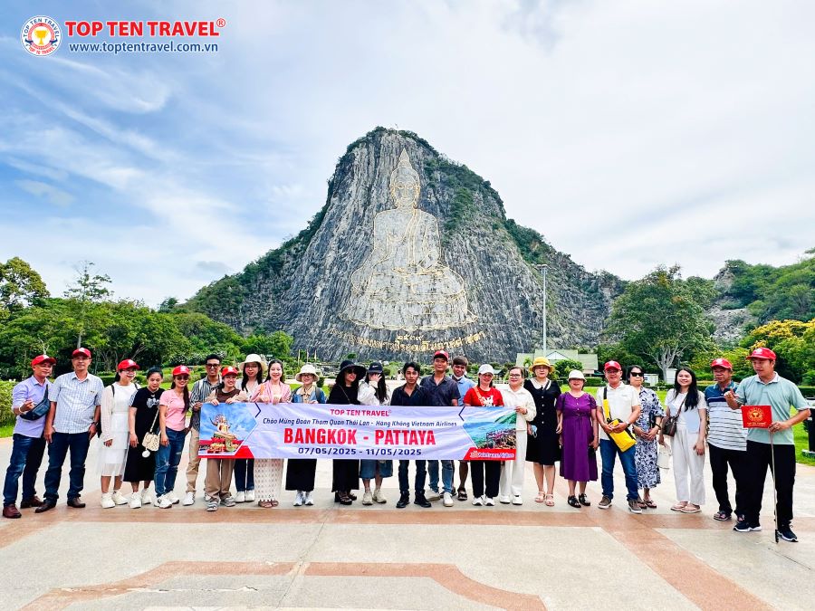 Trân Bảo Phật Sơn – Khao Chee Chan chiêm ngưỡng bức tượng Phật dát vàng 24k chạm nổi tinh xảo trên vách đá sừng sững. Công trình cao 100 mét, ngang 70 mét, đúc theo thế Phật Thích Ca Mâu Ni đang tọa thiền, được xây dựng năm 1996. Tọa lạc giữa xung quanh là thiên nhiên trùng điệp, bức tượng Phật sừng sững uy nghi như tô điểm cho không gian nơi đây thêm phần linh thiêng huyền bí