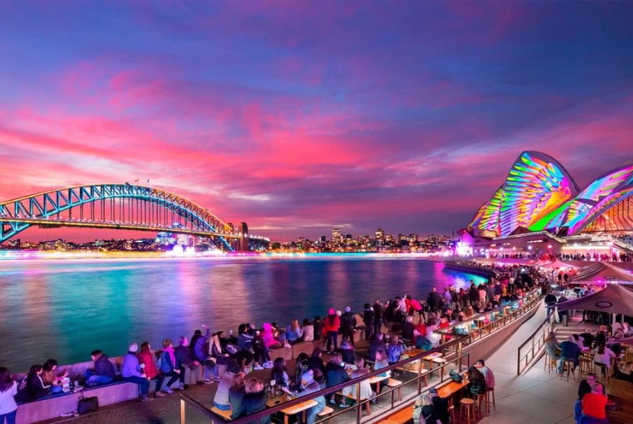Tối: Đoàn dùng bữa tối tại nhà hàng, sau đó về Khách sạn nhận phòng nghỉ ngơi. Nghỉ đêm tại Sydney. Hoặc đoàn tự do tham gia Lễ Hội Ánh Sáng Vivid - một sự kiện nghệ thuật thường niên biến thành phố Sydney thành một bức tranh ánh sáng rực rỡ với các màn trình diễn ánh sáng 3D, âm nhạc và ý tưởng sáng tạo độc đáo.