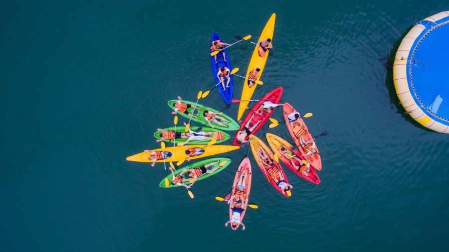17:00: Quay trở lại du thuyền, Trong khi di chuyển về khu vực ngủ đêm, quý khách sẽ chiêm ngưỡng khoảnh khắc hoàng hôn trên Vịnh Lan Hạ - nơi được mệnh danh là “thiên đường bị lãng quên”.