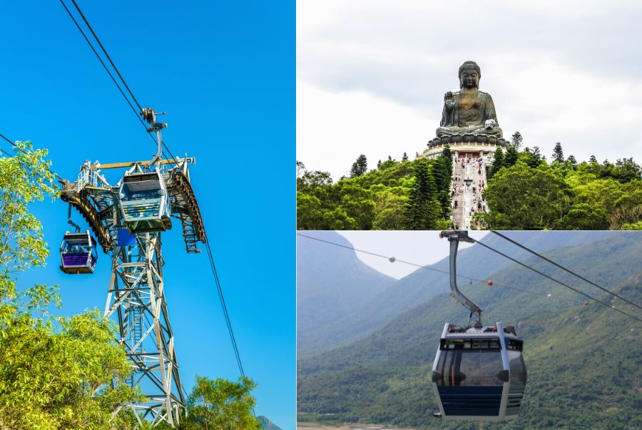 Option 2: Du khách trải nghiệm cáp treo Ngong Ping 360 dài gần 6 km nối Tung Chung với làng văn hóa Ngong Ping trên đảo Lantau. Hành trình kéo dài khoảng 25 phút đưa du khách băng qua biển và núi. Đến Đảo Lantau, du khách có thể tự do tham quan: