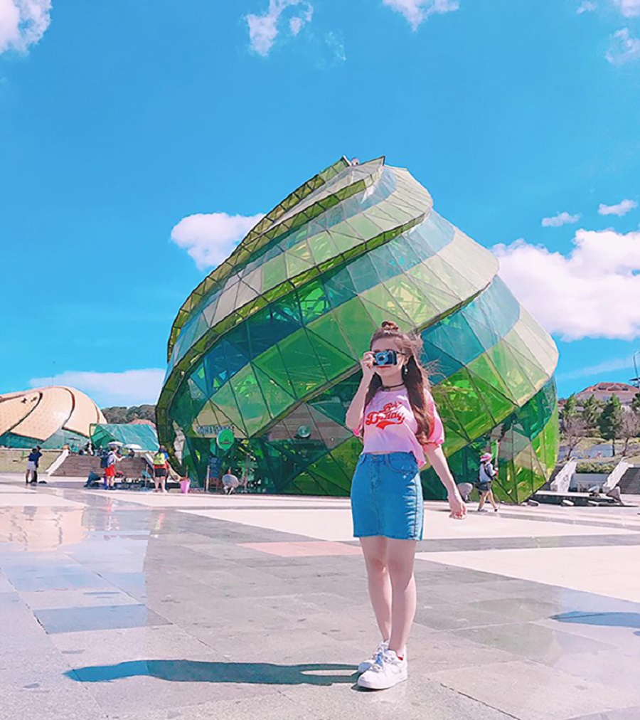 Quảng Trường Lâm Viên: Tọa lạc giữa "trái tim" của thành phố hoa, hướng ra hồ Xuân Hương, không chỉ mang đến không gian rộng lớn, thoáng mát với nhiều hoạt động giải trí mà Quảng Trường Lâm Viên còn ấn tượng với công trình nghệ thuật khổng lồ với khối bông hoa dã quỳ và khối nụ hoa được thiết kế bằng kính màu lạ mắt.