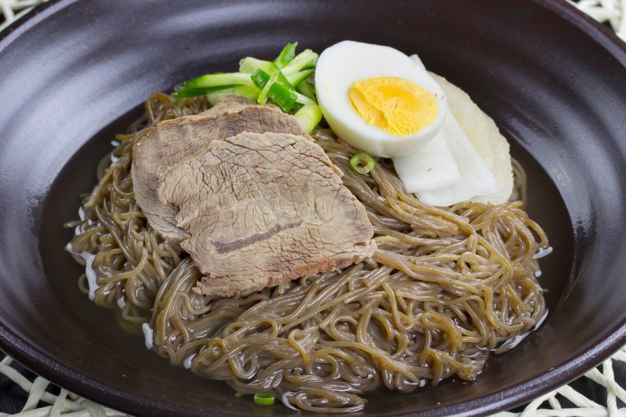 Bên cạnh những tô gà tần sâm nóng hổi, vừa thổi vừa ăn thì một bát mì lạnh Naengmyeon cũng là lựa chọn hàng đầu của người Hàn vào những ngày hè oi ả.