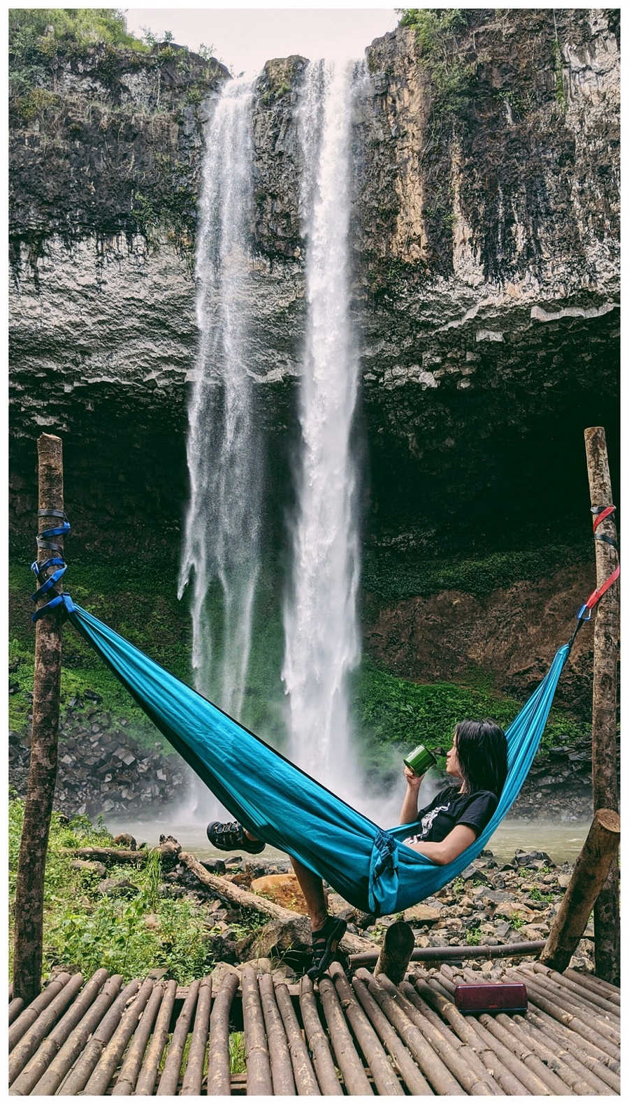Nhìn từ xa, con thác hiện ra với hình dáng của một dải lụa trắng vắt dọc trên vách đá cheo leo. Nếu tiến gần hơn với phía chân thác, du khách sẽ cảm nhận được sự mát lạnh của những bọt nước li ti tung trắng xóa.